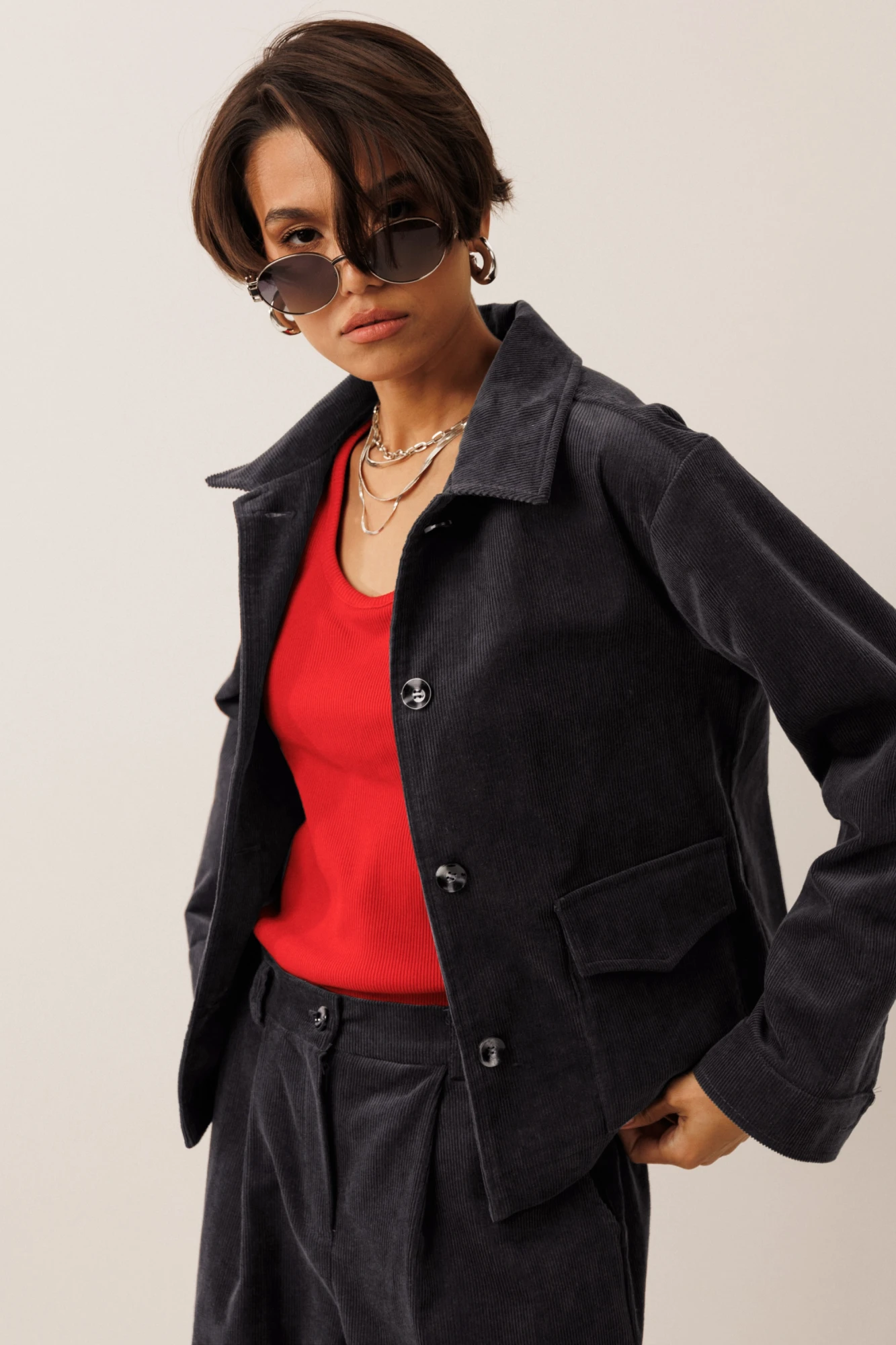 Современный жакет из хлопкового вельвета от GO составит беспроигрышную комбинацию с вашими платьями, юбками и брюками.