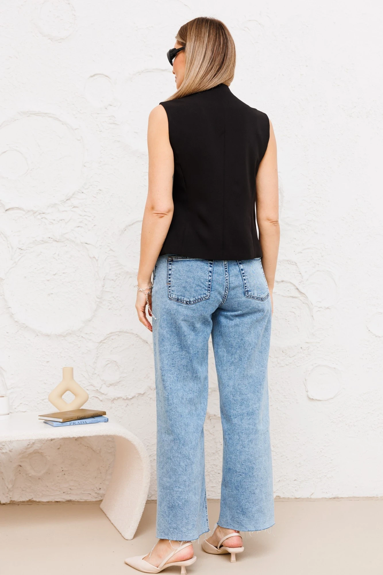 Жилет полуприлегающего силуэта на запах с застежкой на пояс из основной ткани,полукольцо и потайную пуговицу.Жилет на подкладке.По переду жилета прорезные карманы с листочкой.Воротник цельнокроенная стойка. Низ спинки прямой.Низ переда Фигурный