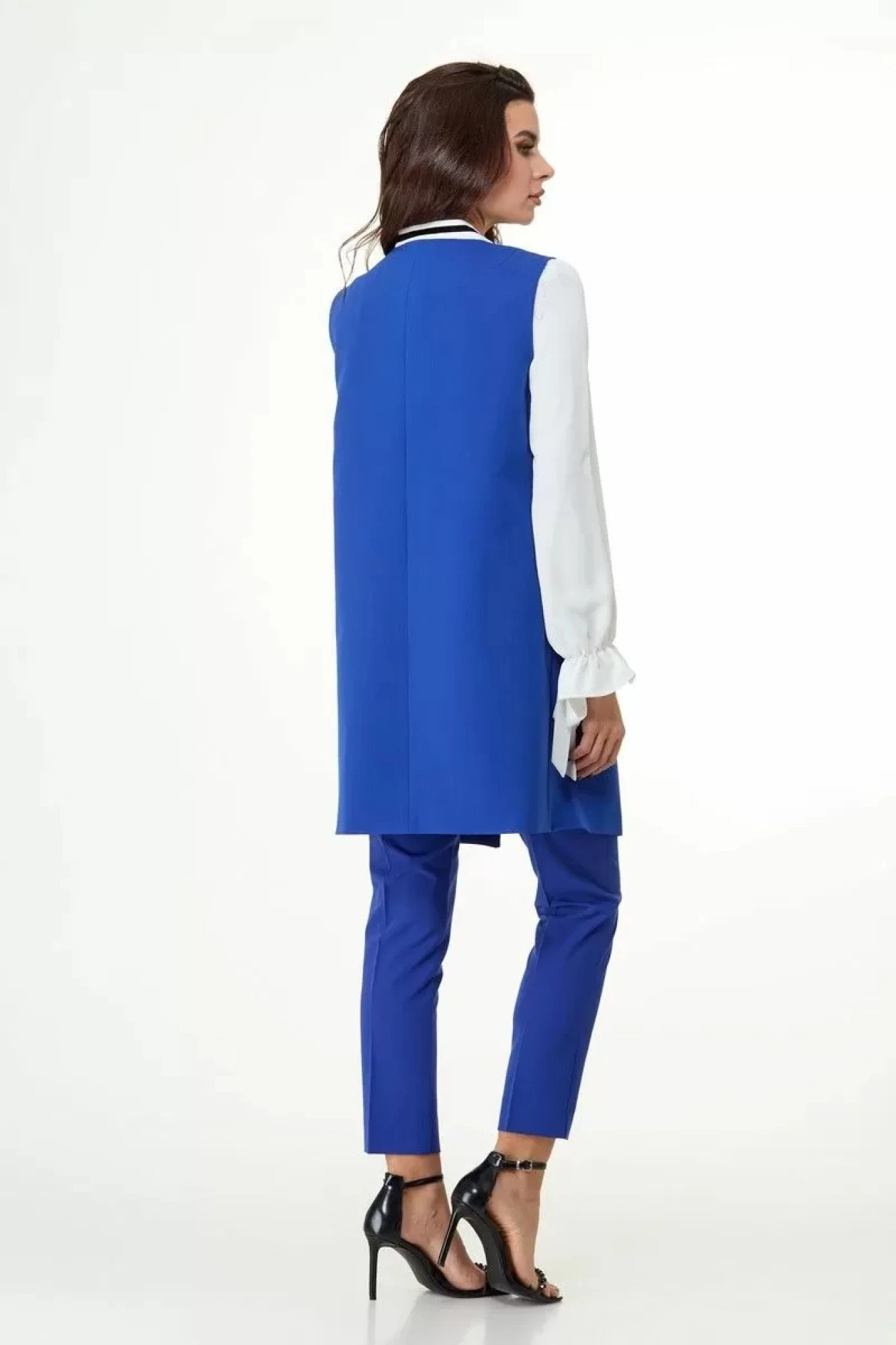 Прямой удлинённый силуэт, с нагрудными вытачками. Отложные лацканы, без воротника. Функциональные прорезные карманы по переду.