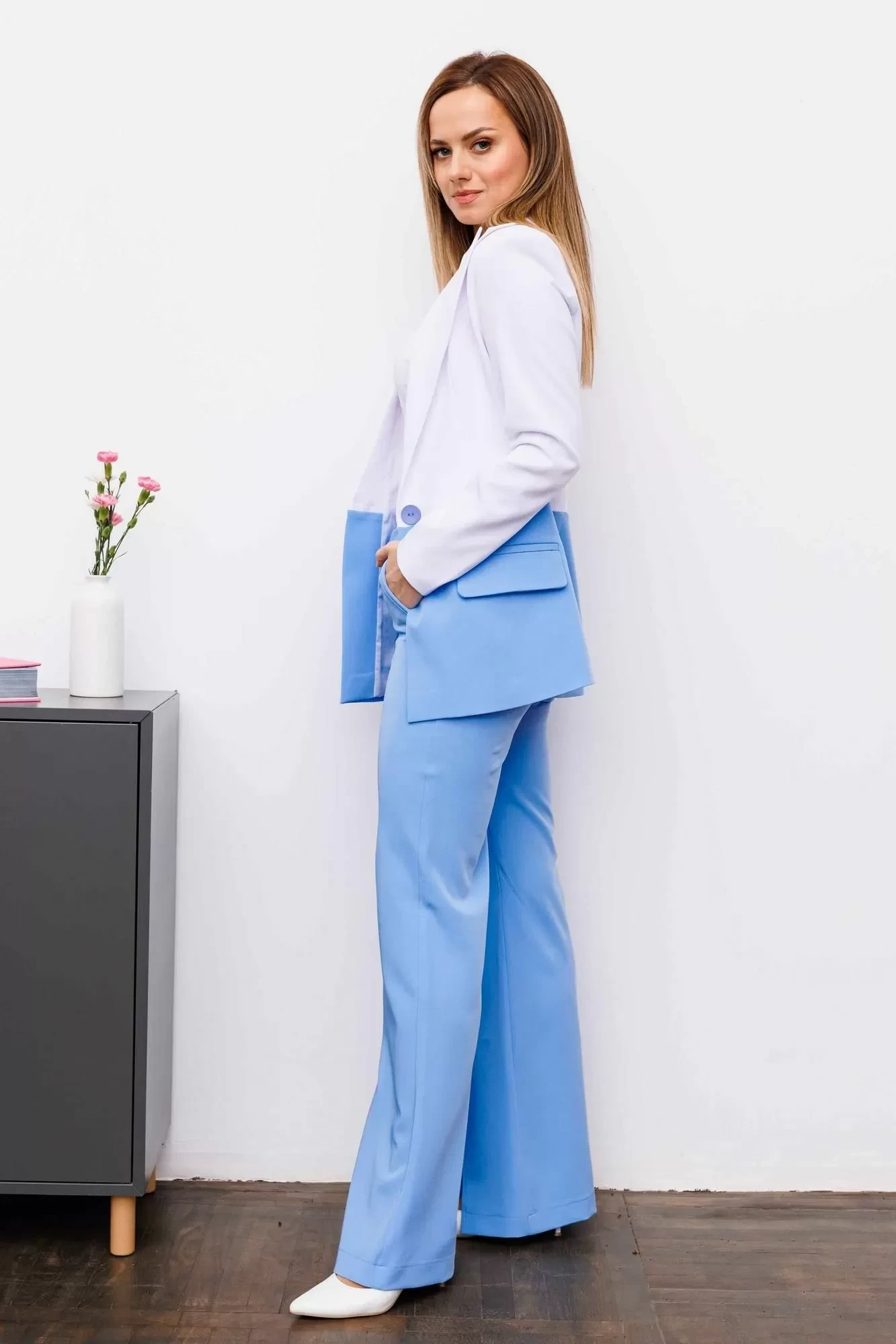 Двухцветный жакет (пиджак) AURA of the day 1091 белый+голубой