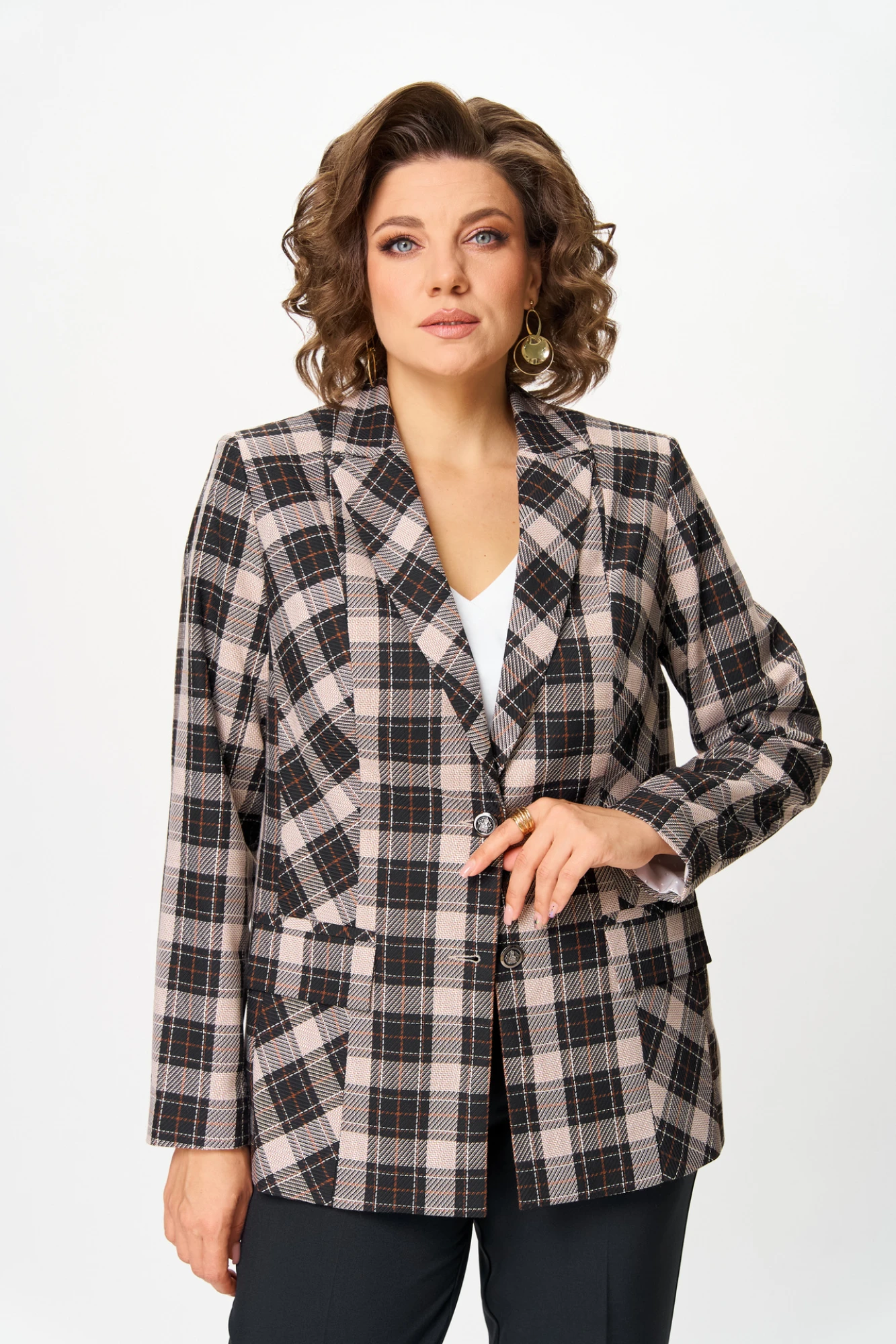 Жакет (пиджак) БелЭльСтиль 412 клетка коричневая