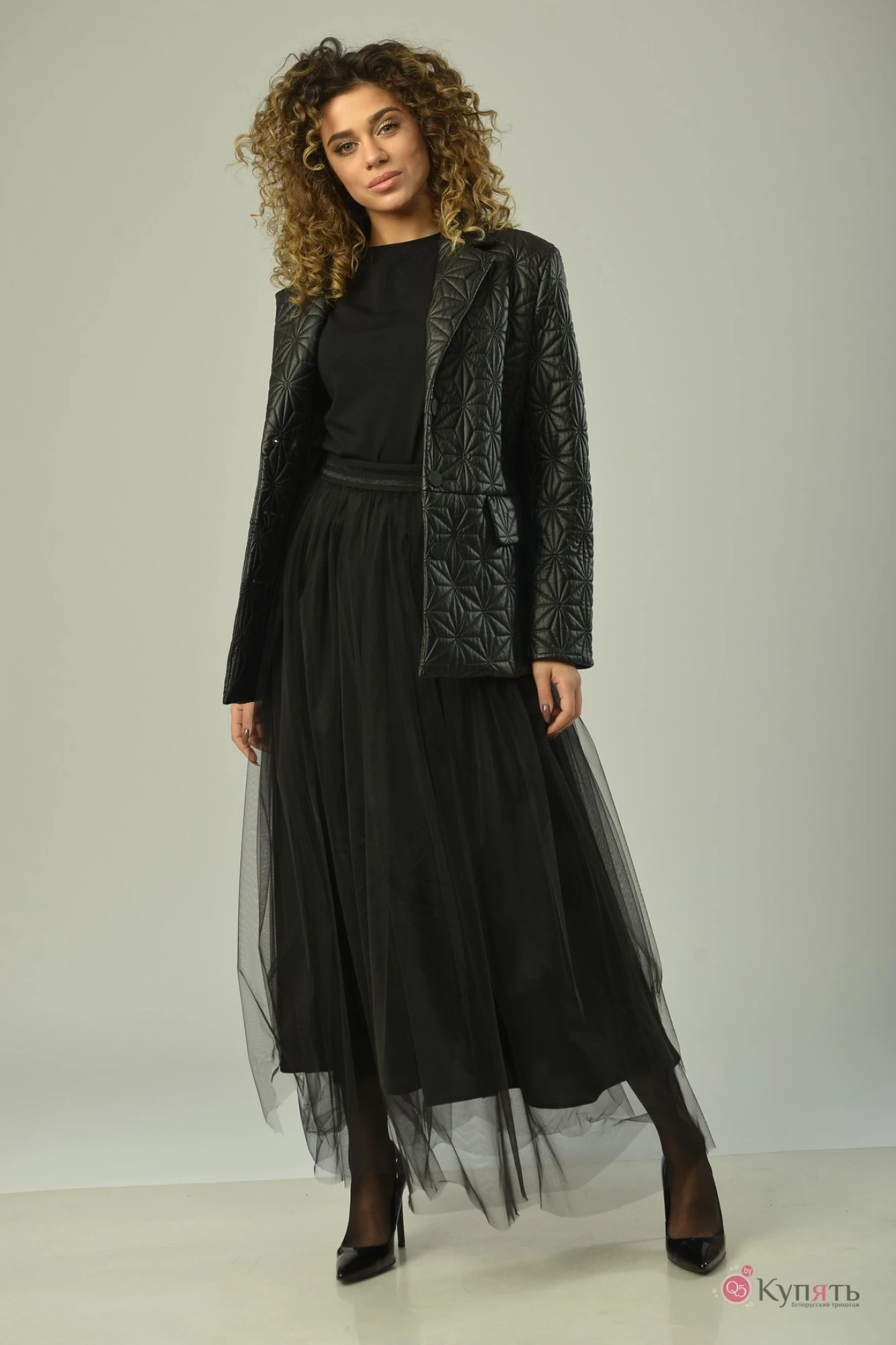 Жакет женский, полуприлегающего силуэта, с центральной застёжкой на петли и пуговицы. По переду отрезной по линии талии, в шве обработаны карманы с клапаном. По спинке средний шов, отрезной по линии талии, рельефные швы от проймы до талии. Рукав втачной 2-шовный со шлицей по низу с застёжкой на кнопки. Воротник стояче-отложной с лацканами. Жакет на подкладке.