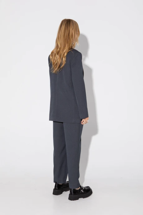 Свободный жакет с разрезами по низу рукавов Детали: жакет прямого силуэта, пиджачный воротник, перед с прорезными функциональными карманами, нагрудный декоративный карман, однобортная застежка на петли и пуговицы, спинка со средним швом, рукава втачные двухшовные с разрезами по низу, жакет на подкладке. Длина жакета по спинке около 72 см в размерах 40-46 и около 74 см в размерах 48-52, длина рукавов около 62,5 см.