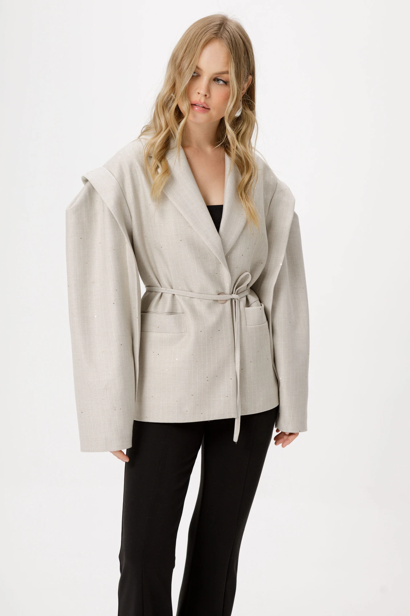 Оверсайз жакет со съёмным поясом.