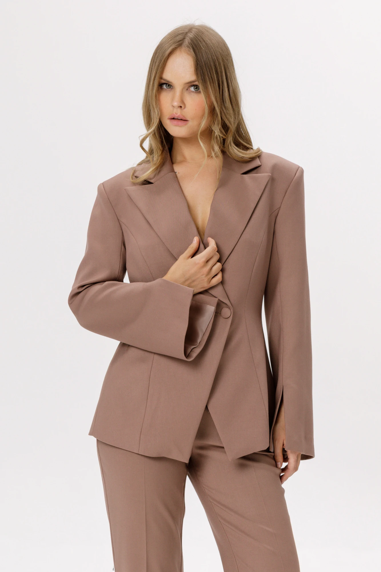 Комплект-двойка из приталенного жакета с разрезами по рукавам и съёмной баски (приобрести брюки с фото можно по арт. 6343, приобрести жакет с фото без баски 6539).
