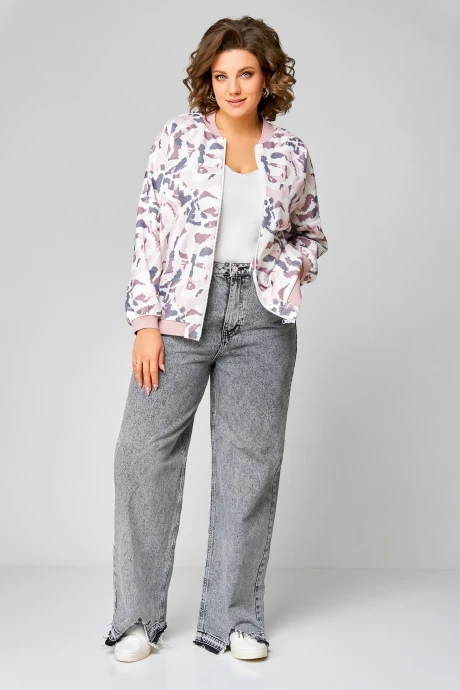 Трикотажный бомбер Swallow 785 Молочный розово-серый принт