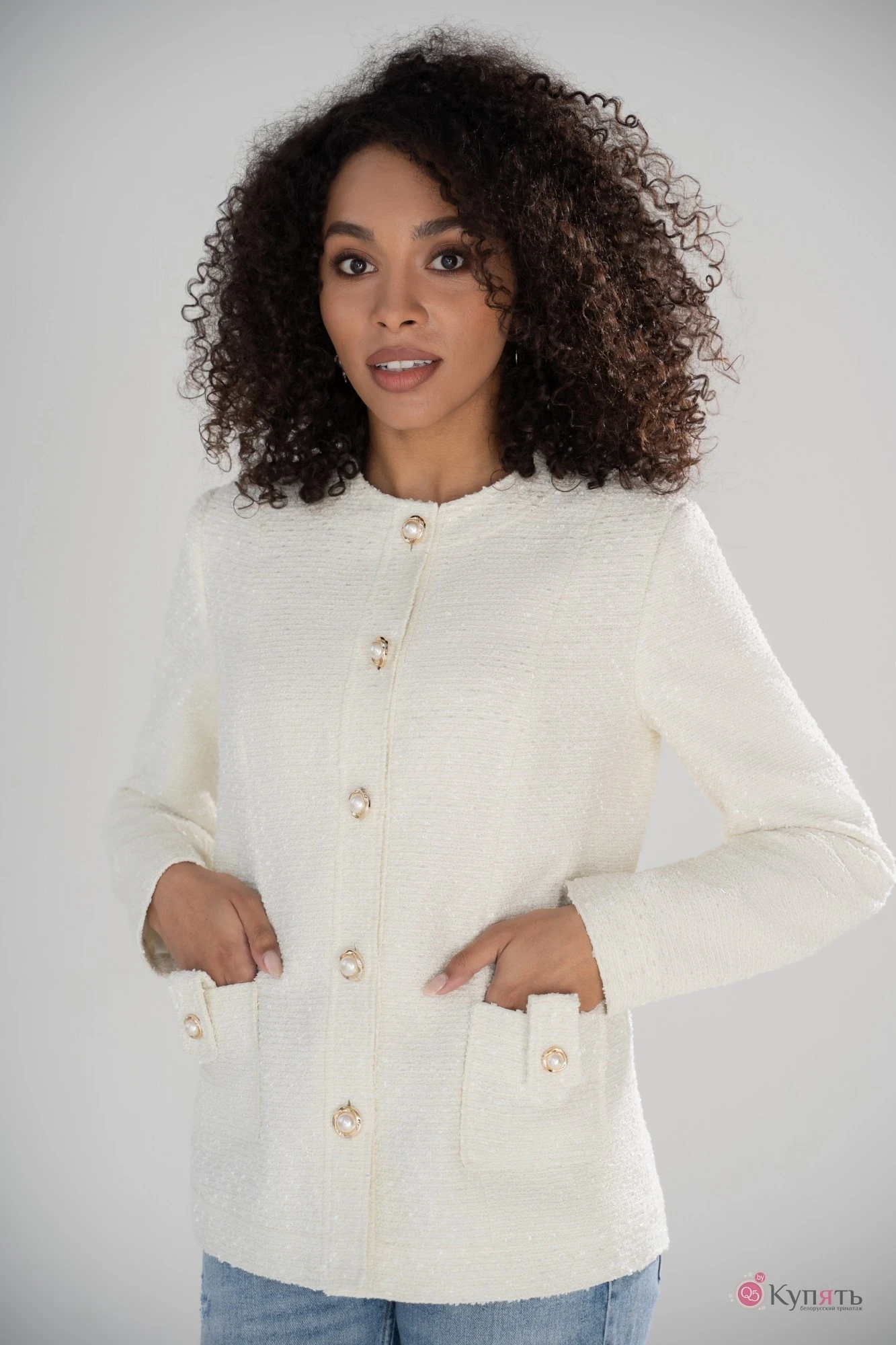 Поклонницы классического стиля в одежде должны иметь в своём гардеробе жакет в стиле Шанель. Эта безупречно женственная и элегантная модель всегда будет в моде. Жакет женский прямого силуэта из костюмно-плательной ткани типа «Шанель»,с центральной застежкой на 5 петель и пуговиц, расположенных на притачной планке (размер, форма и цвет пуговиц, могут незначительно отличаться), на подкладке. Перед с рельефным швом от плеча до низа и талиевой вытачкой с накладными карманами. Карманы с декоративной патой, которая застегивается на 1 петлю и пуговицу. Спинка с рельефом от линии плеча до низа. Горловина круглой формы. Перед горловины, срез борта, низ изделия обработаны отрезной деталью. Рукав втачной двухшовный длинный. Низ рукава оформлен отрезной деталью. Планка переда и спинки, карман, низа жакета и рукава с отделочной строчкой шириной 0,5 см.