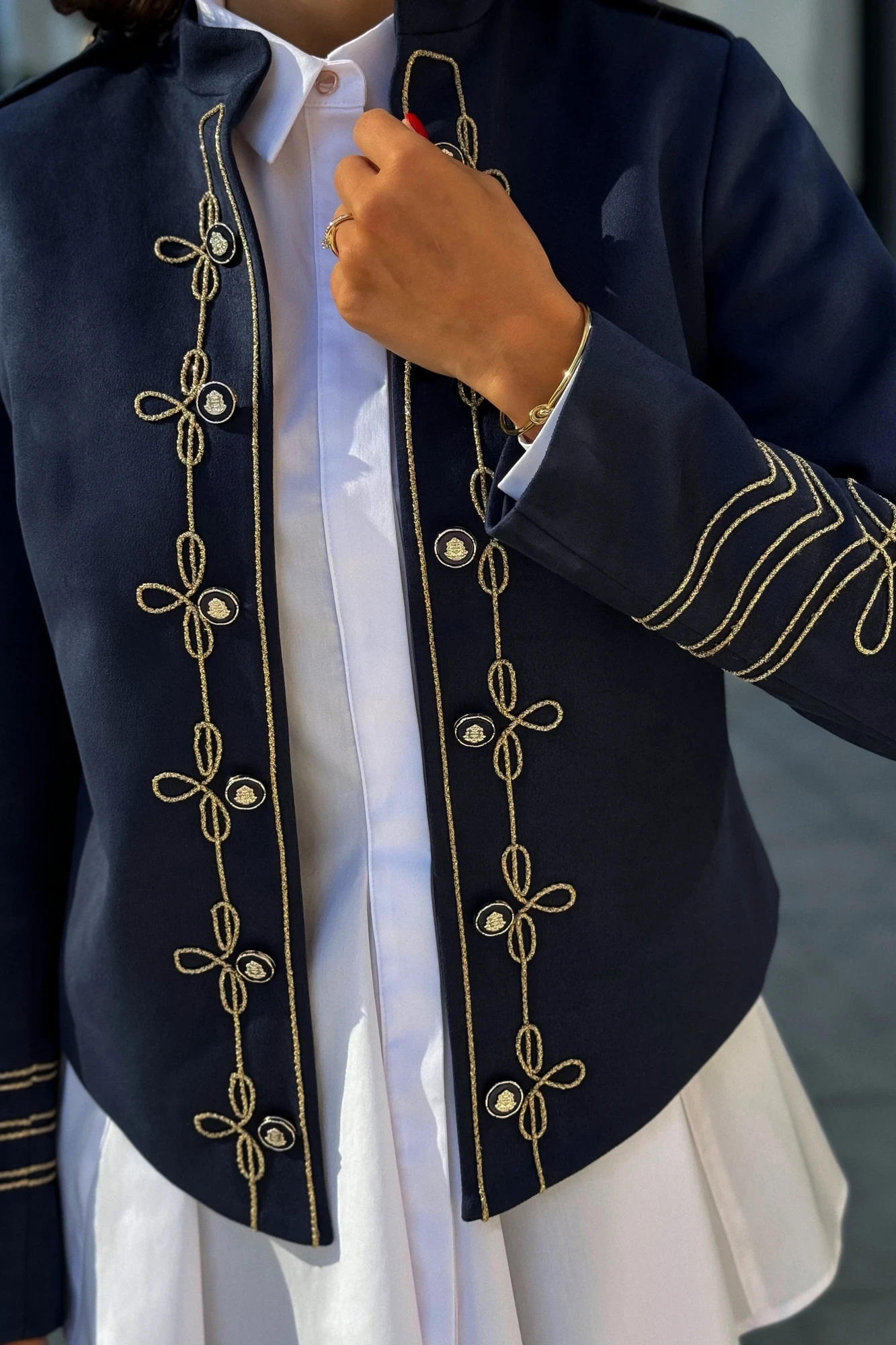 50:Длина жакета по среднему шву спинки – 49,5 см (±1,5 см), Ширина на уровне глубины проймы – 55,0 см (±1,0 см), Ширина на уровне линии талии – 51,0 см (±1,0 см), Длина рукава – 61,0 см (±1,0 см), Ширина рукава жакета вверху – 19,0 см (±1,0 см), Ширина рукава внизу - 13,5 см (±0,5 см), Длина плеча – 12,5 см (±0,5 см).
