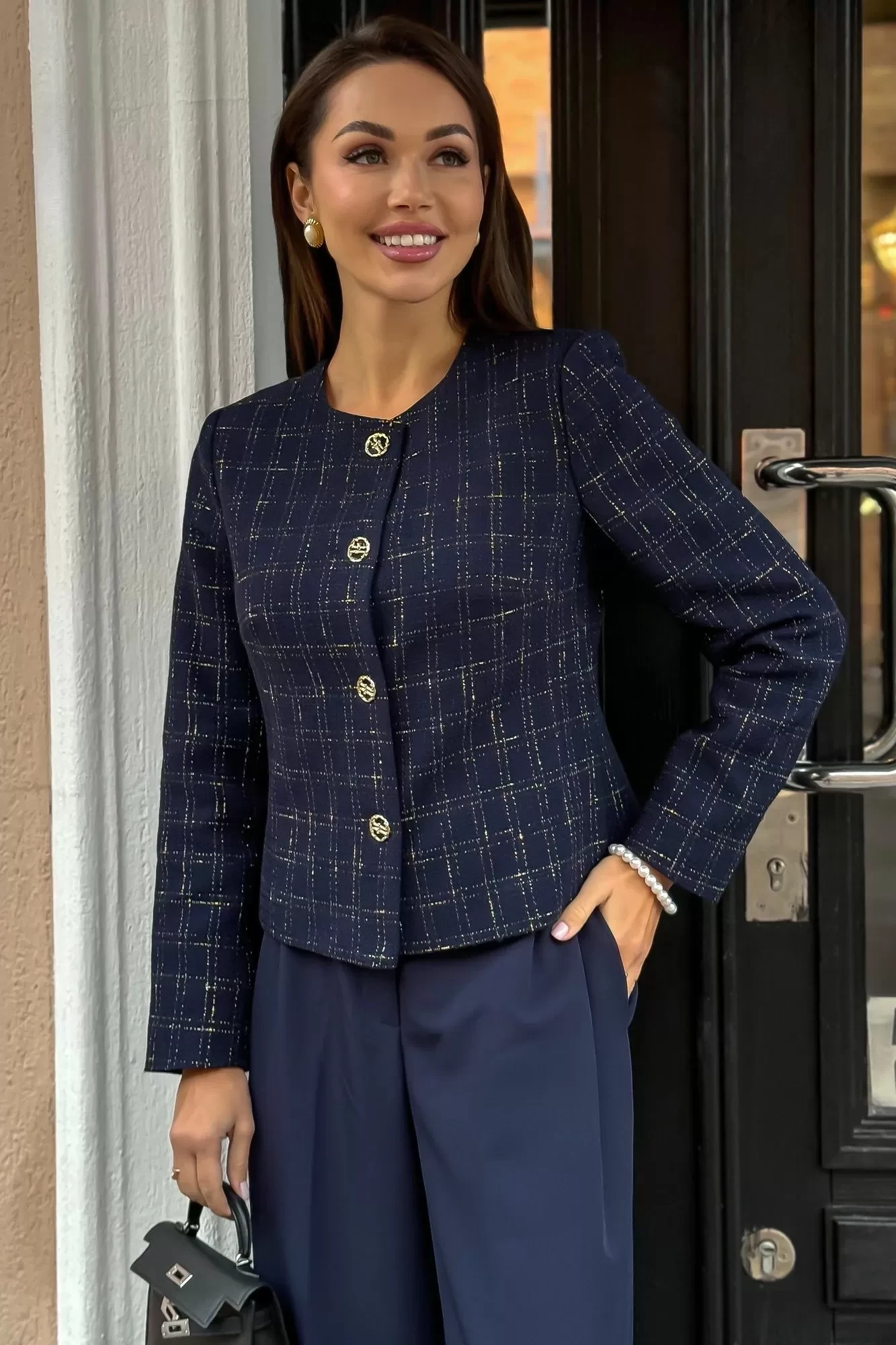 Длина по среднему шву спинки - 51,5 см (±2,0 см), Ширина на уровне глубины проймы - 54,0 см (±1,0 см), Ширина на уровне линии талии - 50,0 см (±1,0 см), Длина рукава - 60,5 см (±1,0 см), Ширина рукава вверху - 19,5 см (±1,0 см), Ширина рукава по низу - 14,0 см (±0,5 см), Длина плеча - 11,7 см (±0,5 см).