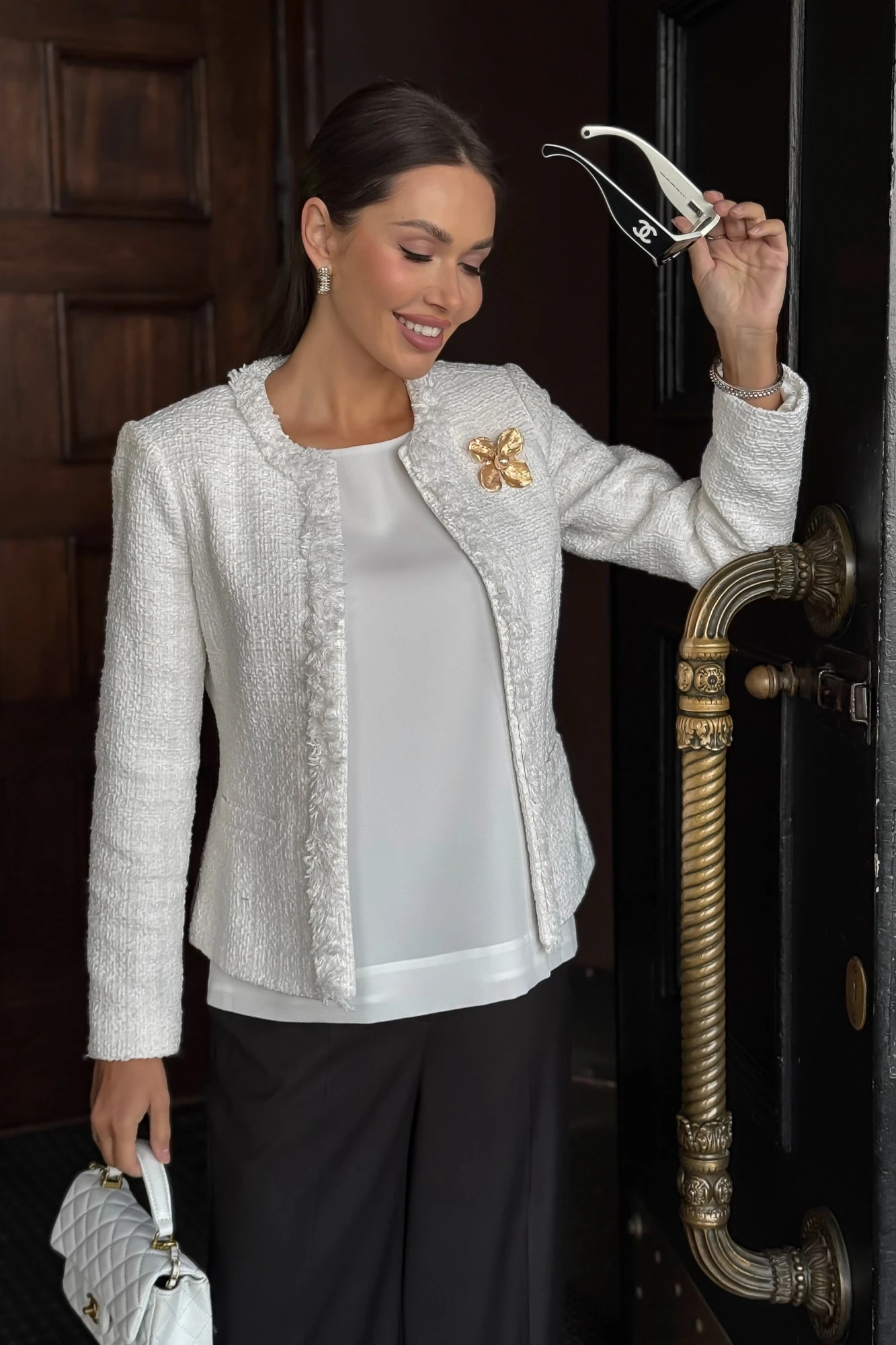 Длина спинки вдоль среднего шва - 59,5 см (±2,0 см), Ширина спинки ( на расстоянии 10,0 см от плечевого) - 42,0 см (±0,5 см), Ширина на уровне глубины проймы - 58,0 см (±1,0 см), Ширина на уровне линии талии - 53,0 см (±1,0 см), Ширина по низу изделия - 62,0 см (±1,0 см), Длина рукава - 61,5 см (±1,0 см), Ширина рукава вверху - 20,0 см (±1,0 см), Ширина рукава по низу - 13,7 см (±0,5 см), Длина плеча - 12,4 см (±0,5 см).